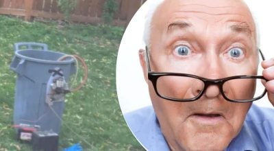 Ang usa ka litrato sa usa ka katingad-an nga istruktura nga hinimo sa mga baterya ug usa ka basurahan nga konektado sa usa ka kahoy nga nagpalibut sa...